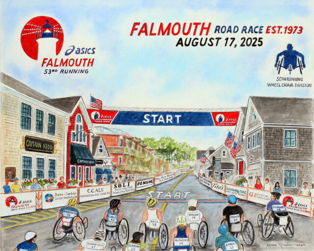 Karen Rinaldo Celebrates the 50th Running of the Wheelchair Edition with her 2025 ASICS Falmouth Road Race Poster Art